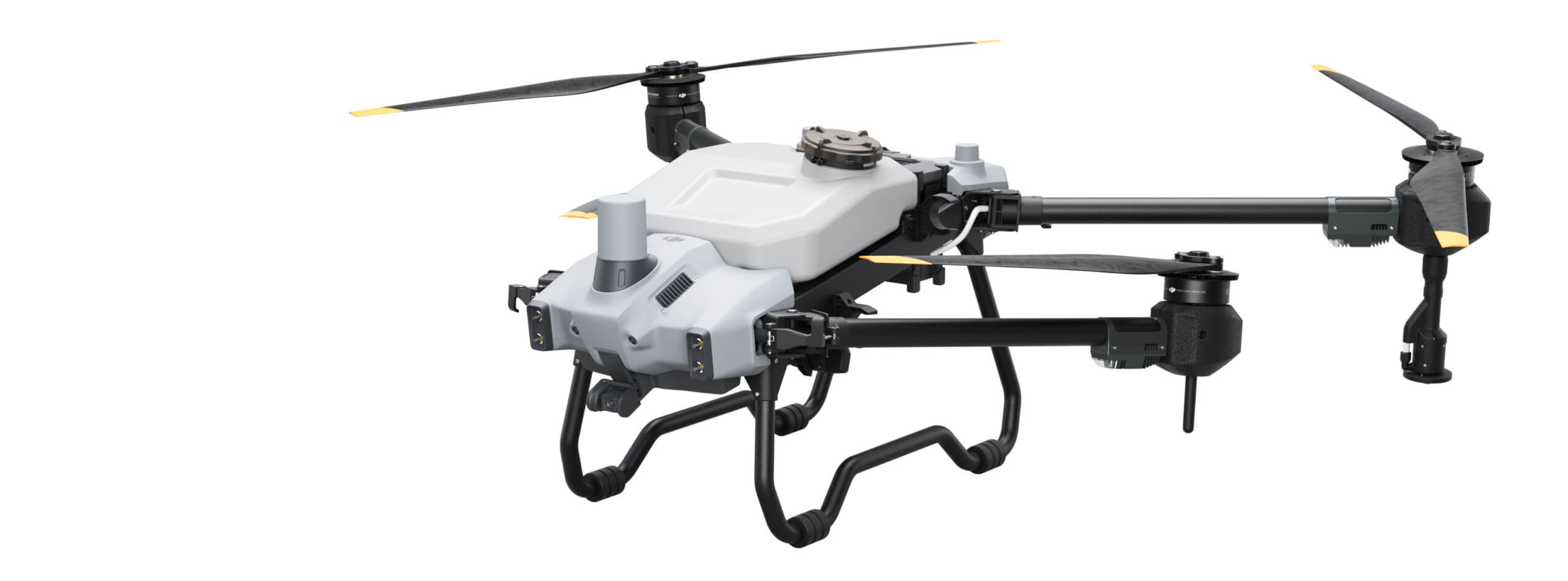 O AGRAS T20P possui quatro rotores e um novo design de treliça inclinada que reduz seu tamanho em 77% para facilitar o manuseio por uma pessoa. Tamanho perfeito para o funcionamento ideal